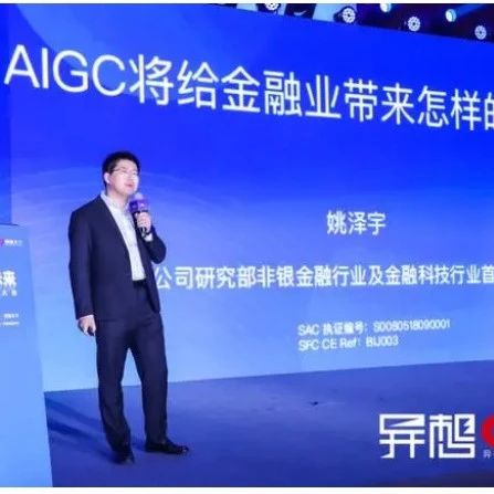2023年5月18日,在由《财经天下》、「市界」、《博客天下》联合举办的2023异想大会上,中金公司研究部非银金融行业及金融科技行业首席分析师姚泽宇带来了《AIGC将给金融业带来怎样的变革?》主题演讲,针对这些问题给出了自己的一系列解答。
