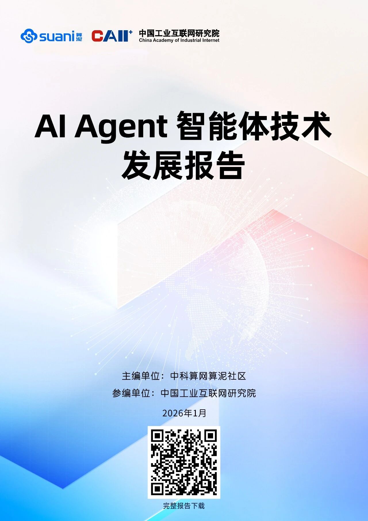 1月13日,由中科算网算泥社区主编、中国工业互联网研究院参编的《AI Agent智能体技术发展报告》正式发布!该报告旨在全面、深度地梳理AI Agent技术的最新进展、产业生态格局、应用落地现状以及未来发展趋势。希望通过这份白皮书,为广大的AI开发者、技术从业者、企业决策者以及高校研究人员,提供一个权威、专业、前瞻的参考框架,共同迎接和拥抱由AI Agent引领的智能化新时代。
